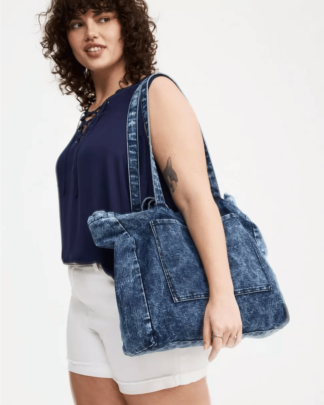 Casual, roomy, and effortlessly stylish—this denim tote is perfect for carrying everything you need with playful, everyday confidence.