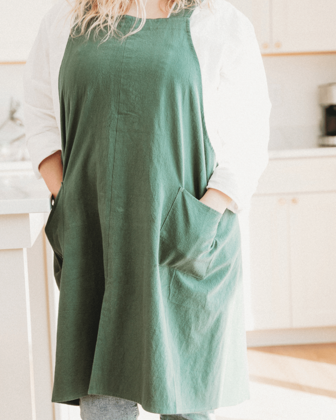 Earthy, hardworking Wilted Spinach delivers crossback comfort, generous coverage, and zero neck strain—made for real bodies cooking confidently every day.