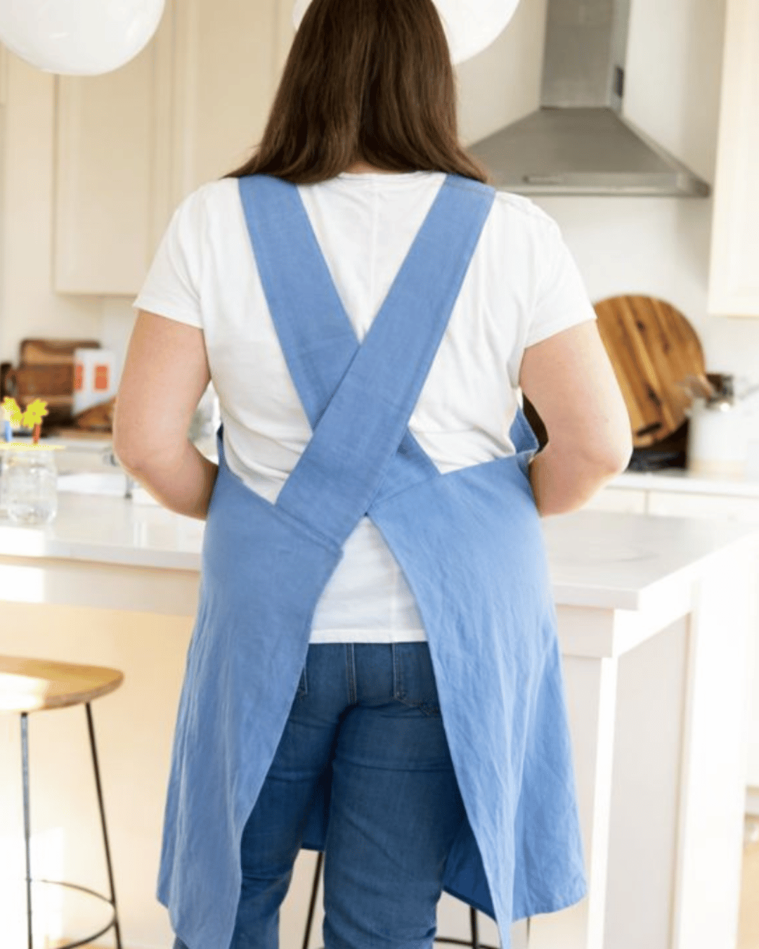 Blueberry Cobbler wraps you in crossback comfort, generous coverage, and zero neck strain—made for real bodies and joyful, imperfect baking.