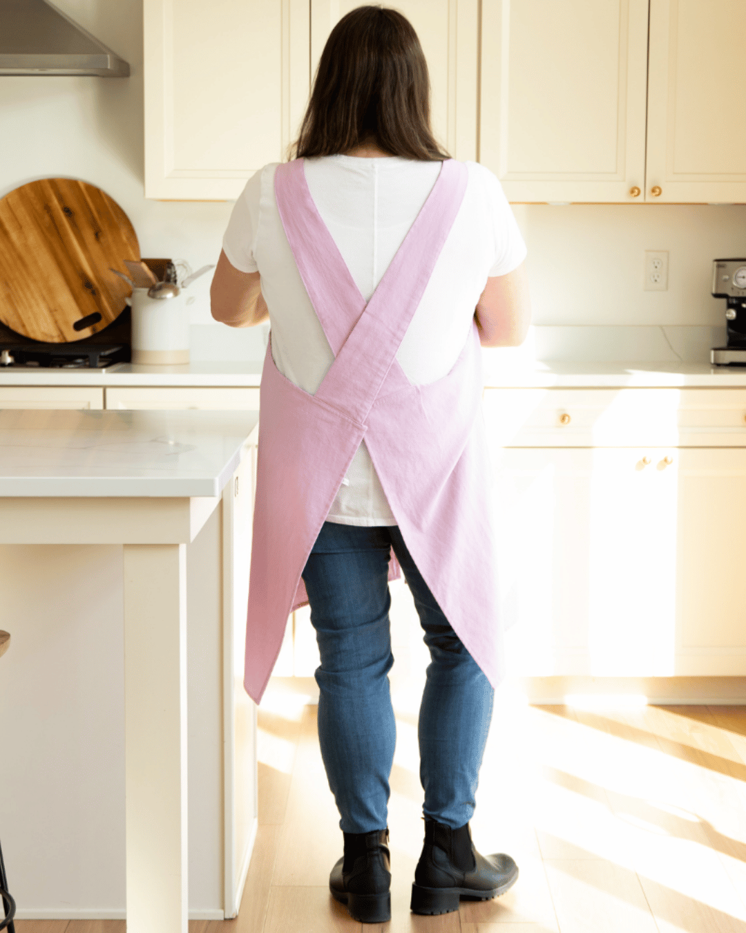 Lavender Cupcake brings soft nostalgia to your kitchen—crossback comfort, generous coverage, zero neck strain, and a fit made for real bodies