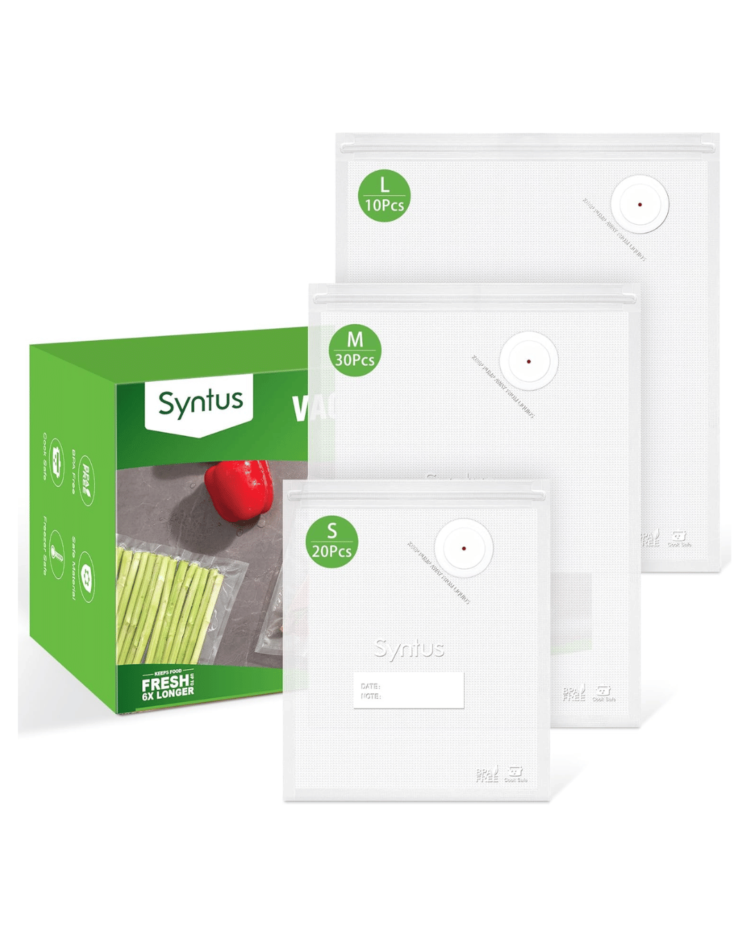 Durable, reusable vacuum bags in versatile sizes—perfect for sous vide, freezing, and meal prep while keeping food fresher, longer.
