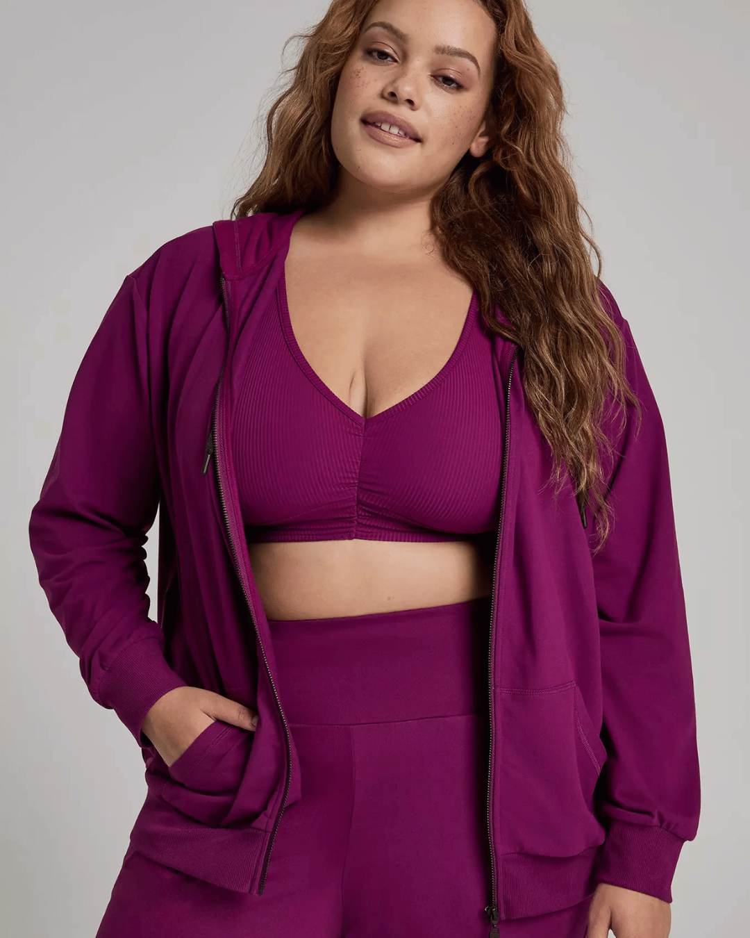 These high-rise leggings are stretchy, pocket-ready, and stylish—perfect solo or paired with the matching jacket for sporty-chic ease.