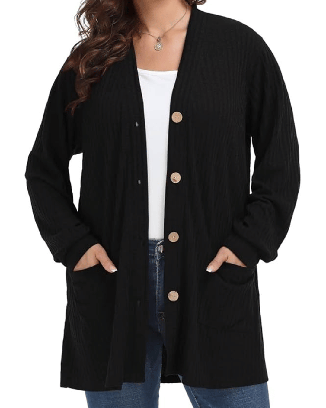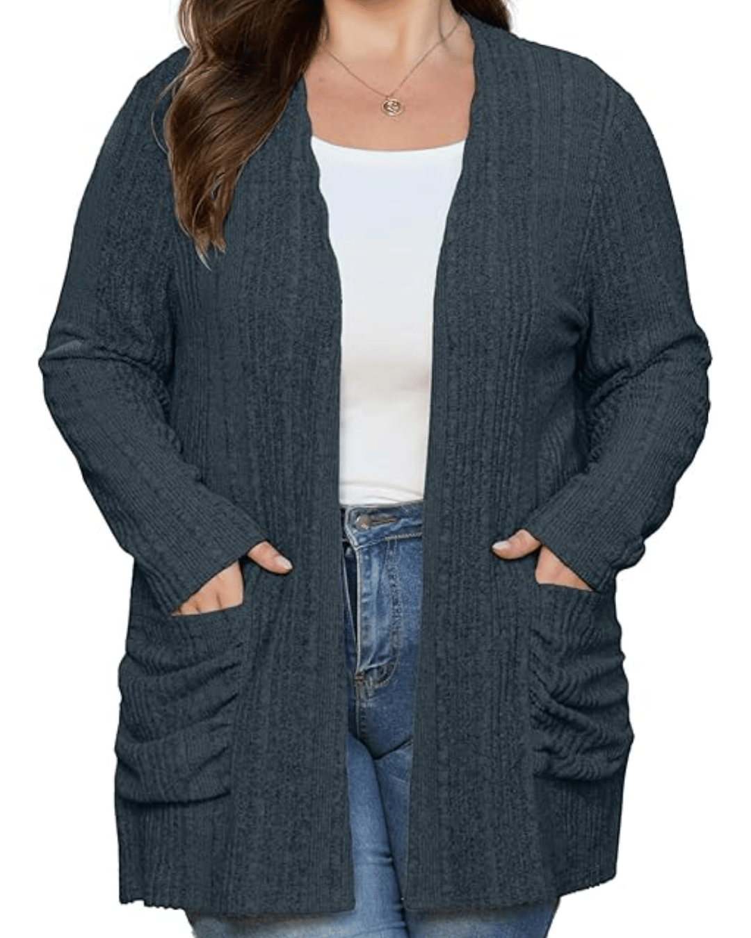 This cardigan is a go-to—with roomy pockets, perfect for layering, running errands, or lounging comfortably at home.