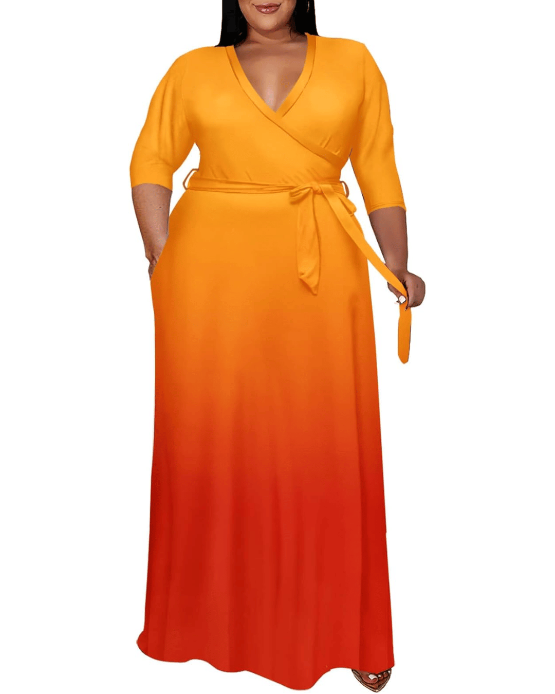 This maxi dress was made for curves! With a wrap-style V-neck, flowy pleats, and a belted waist, it flatters in all the right places.
